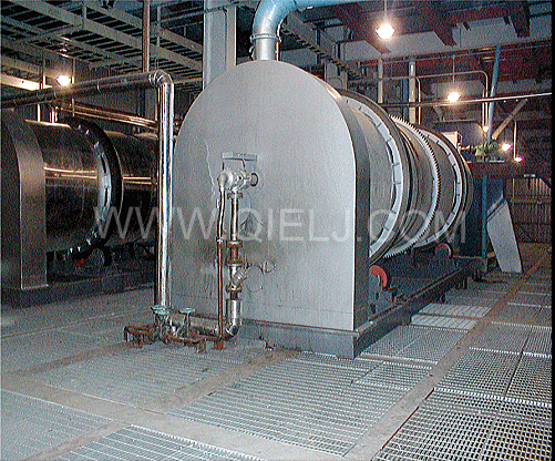 軟化工序:采用YRHW系列臥式軟化鍋,通過(guò)進(jìn)料絞龍進(jìn)入軟化轉(zhuǎn)筒內(nèi),隨著轉(zhuǎn)筒的轉(zhuǎn)動(dòng),物料得到不斷的翻動(dòng),由于轉(zhuǎn)筒內(nèi)裝有加熱列管,列管內(nèi)通有蒸汽,因此物料在隨著轉(zhuǎn)筒不斷翻動(dòng)的同時(shí),將大豆加熱到50-70℃,使其充分軟化,提高大豆原料的塑性,使軋胚機(jī)軋出的胚薄而不碎,從而提高浸出效果。轉(zhuǎn)筒帶有進(jìn)料端高、出料端低的傾角,根據(jù)物料的軟化情況,通過(guò)調(diào)速裝置調(diào)節(jié)轉(zhuǎn)筒的轉(zhuǎn)速,可以控制物料在轉(zhuǎn)筒內(nèi)的軟化時(shí)間,使物料的軟化效果達(dá)到理想狀態(tài)。